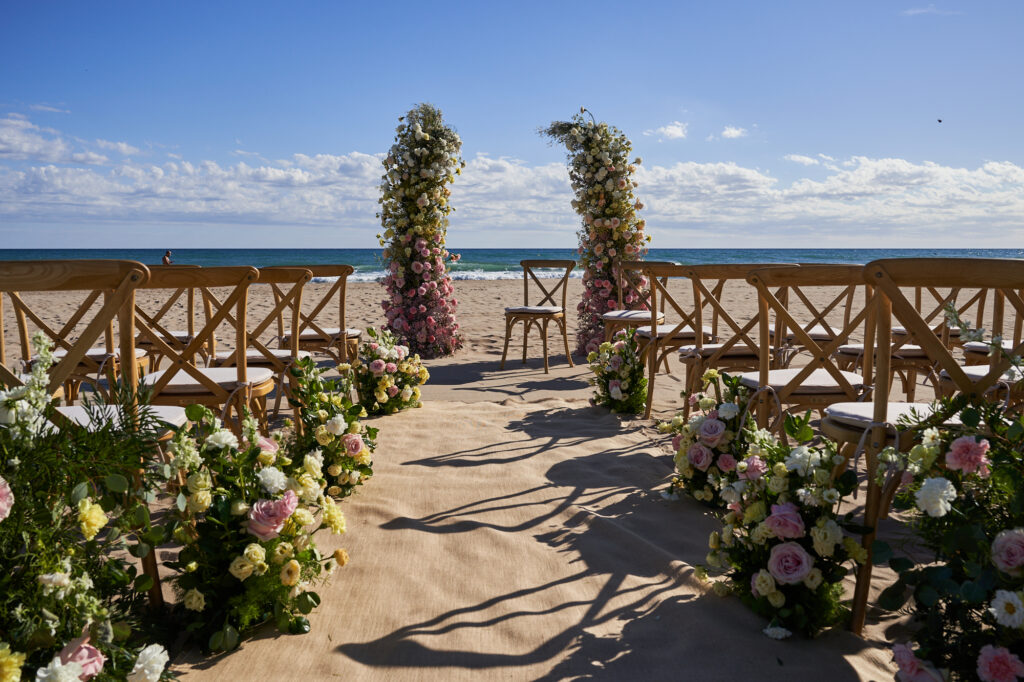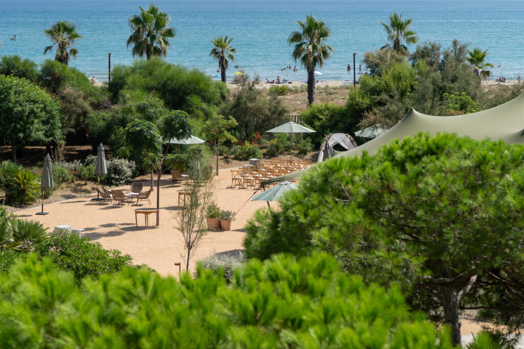 Accede a los jardines del hotel directamente desde la playa para continuar la celebración. Un entorno idílico para mantener la estética mediterránea de la boda, empezando por los aperitivos y continuando con la experiencia gastronómica.